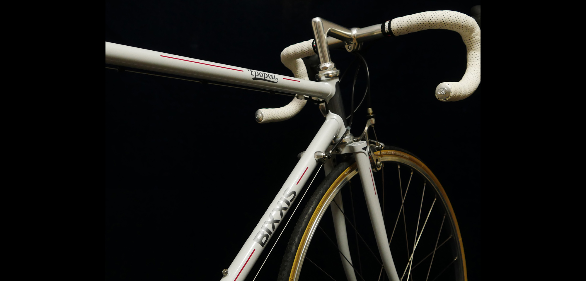 言ってしまえば、60年代、70年代と言う、チクリズモが今よりもおおらかだった古き良き時代を懐古させるクロモリラグフレームとスレッドフォークのロードバイクEPOPEAを形容する詞を見つけるのは容易い。ヴィンテージ、あるいはノスタルジックと例えれば、だれもが納得するだろう。(とはいえ、EPOPEAに使用しているチューブセットCOLUMBUS SLXの発売は1985年だから、もう少し後の世代だが、いずれにしても前時代のリバイバル的なモデルには違いない)